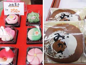 いちごが丸ごと入った「いちご大福」は今が旬の人気商品です。いちごは毎日自分の目で、自分の足でいいものを探してきます。 一口くわえると甘酸っぱいいちごが口いっぱいに広がり、思わず笑顔になります。 つぶつぶの赤エンドウが入った豆大福、さくらもちや草もちもこの時期ならではのお勧め商品です。 赤や緑のかきもちもこの時期ならでは、焼いたり油で揚げたりと楽しみ方も色々です。 |